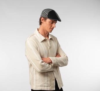With its reimagined prince of Wales pattern and solid wool inserts, this Flat cap stands out with its graphic and modern look. The subtly integrated touches of color energize the whole, while its fitted cut gives it an elegant line.