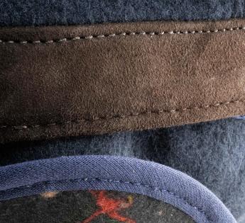 Visor cap in a warm and comfortable woolen cloth. Its crown will insulate very well from the cold thanks to its fleece lining. The visor is designed with leather which is echoed behind the crown by another leather band. The making includes earflaps to extend the headgear protection and make the design more sophisticated.