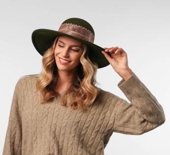 Made from naturally water resistant felted wool, it offers comfort, protection, and support. Its flexible shape with wide brims gracefully frames the face with femininity. An exceptional piece, born from artisanal expertise, to assert one's style with character.