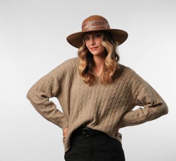 Made from naturally water resistant felted wool, it offers comfort, protection, and support. Its flexible shape with wide brims gracefully frames the face with femininity. An exceptional piece, born from artisanal expertise, to assert one's style with character.